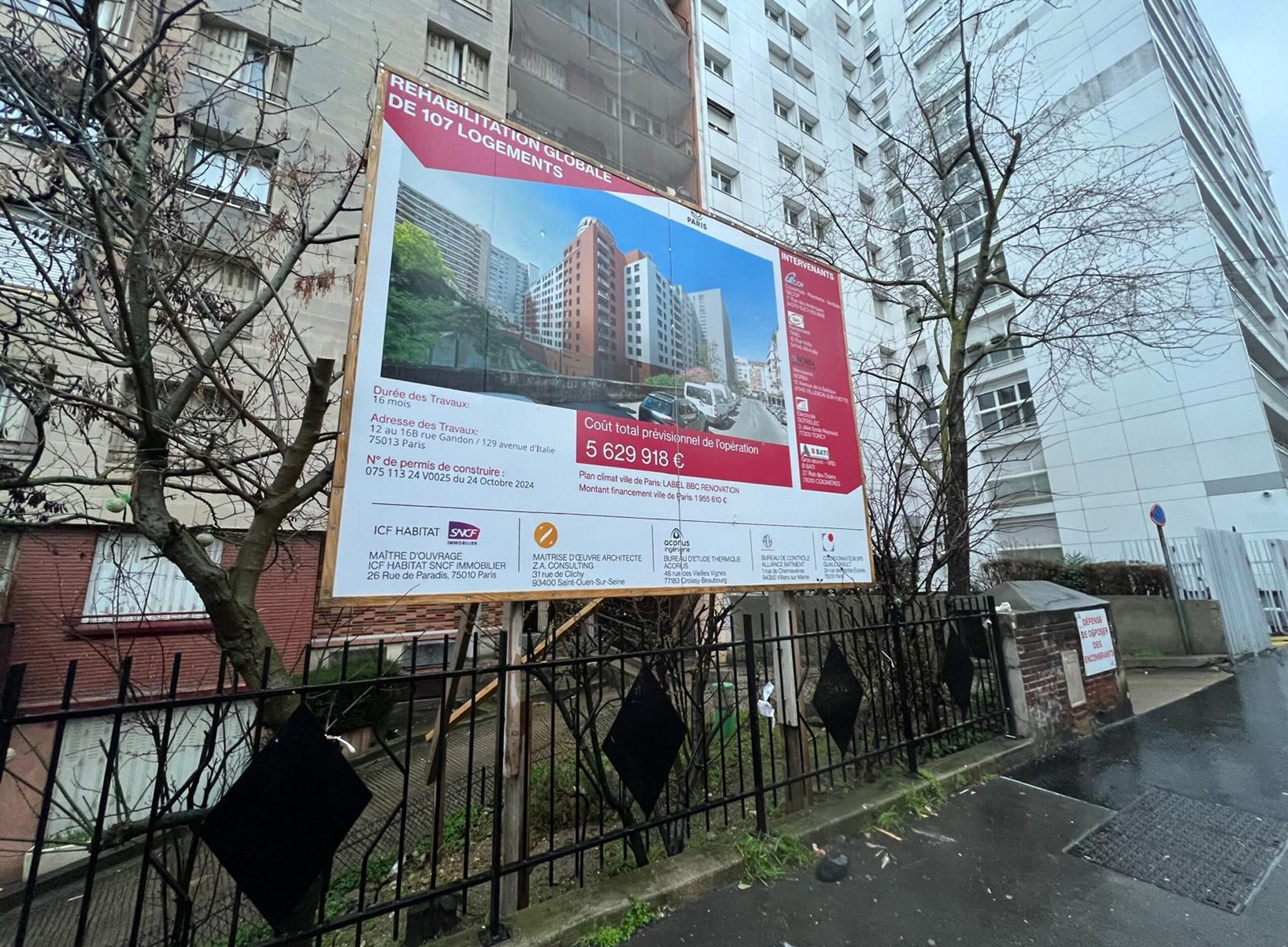 Mandatés par ICF HABITAT, nous intervenons sur les travaux de réhabilitation et modernisation des bâtiments situés du 12 au 16 bis rue Gandon, 75013 Paris, dans le cadre d’une opération de réhabilitation.